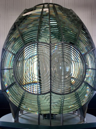The lighthouse was damaged by the 1906 San Francisco earthquake. A new one was erected with steel reinforcement rods encased in concrete to withstand future quakes. At the time of its installation, the Fresnel lens in the lighthouse was a technological marvel from France, consisting of 666 hand-ground glass prisms and weighing more than six tons at a diameter of six feet. The lens, no longer operational after having been replaced by modern automated rotating-light beacons, is now on display inside the lighthouse.