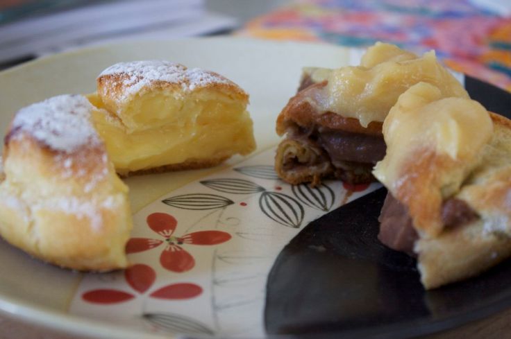 We stopped at Liliha Bakery on the way back from Helena’s. Customers come here for the coco puffs. There was a line to order the bakery items. A cafe inside also serves meals, breakfast apparently being the favorite time. For the puffs, you get your choice of original, green tea, chocolate or custard, although it’s beyond me why custard is a separate kind. It seems to be in all of them. The custard is lightly sweet and creamy, surrounded by a tender, eggy shell. The effect is not unlike a good cream puff. As of this writing, they are $1.35 apiece. Personally, I didn’t find these desserts to be compelling enough to warrant a return visit. They are certainly good, but Leonard’s is mo betta pastry.