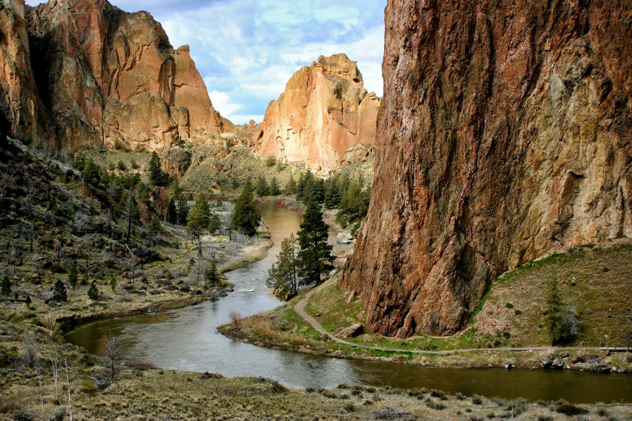 North of Redmond, rock climbers flock to Smith Rock State Park to scale the spectacular vertical walls of hardened volcanic tuff. We made a brief stop here on the way home, even though I was under the weather with chills and body aches. Probably against better judgment, I decided we should take the brief hike down to the Crooked River and watch some rock climbers in action. There are other hiking trails, one of which leads to the top of the rocks, but this will be reserved for another day.