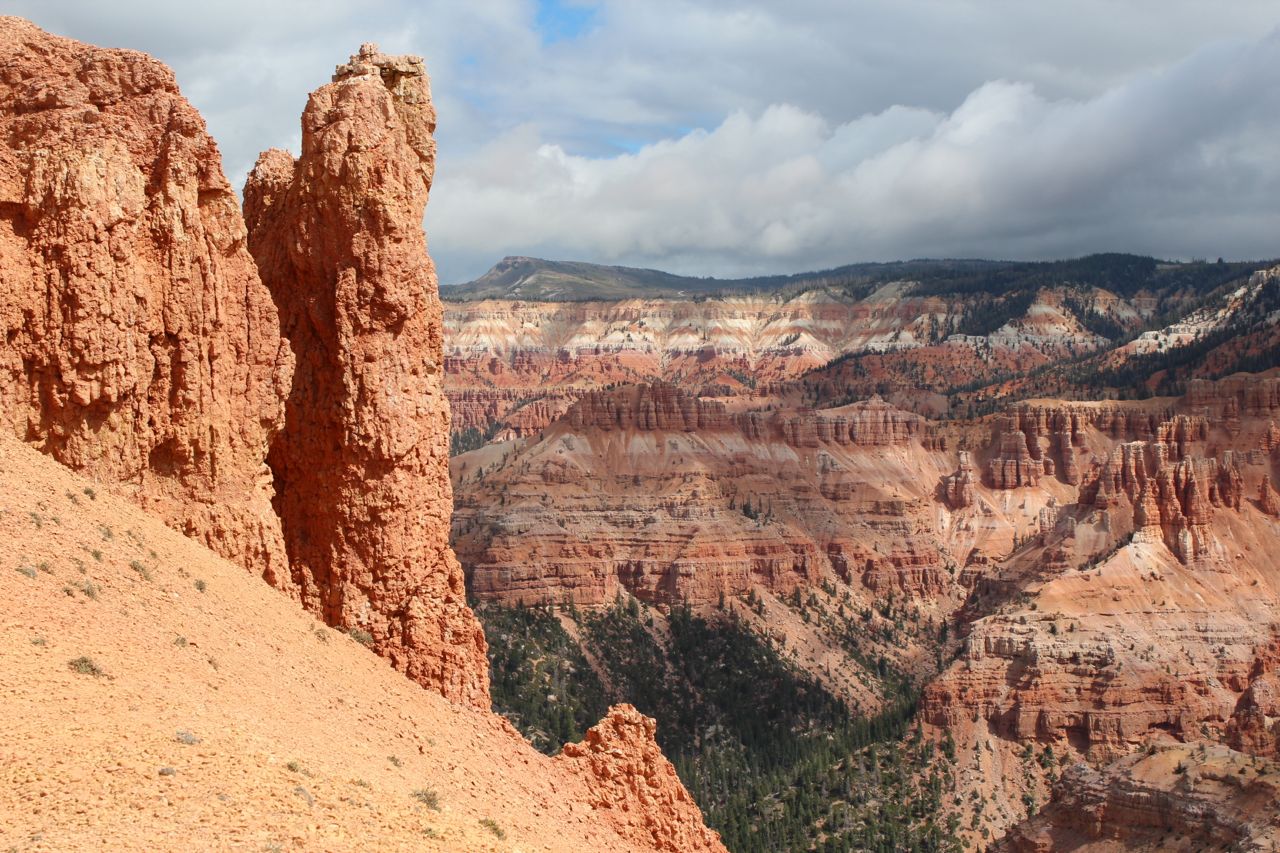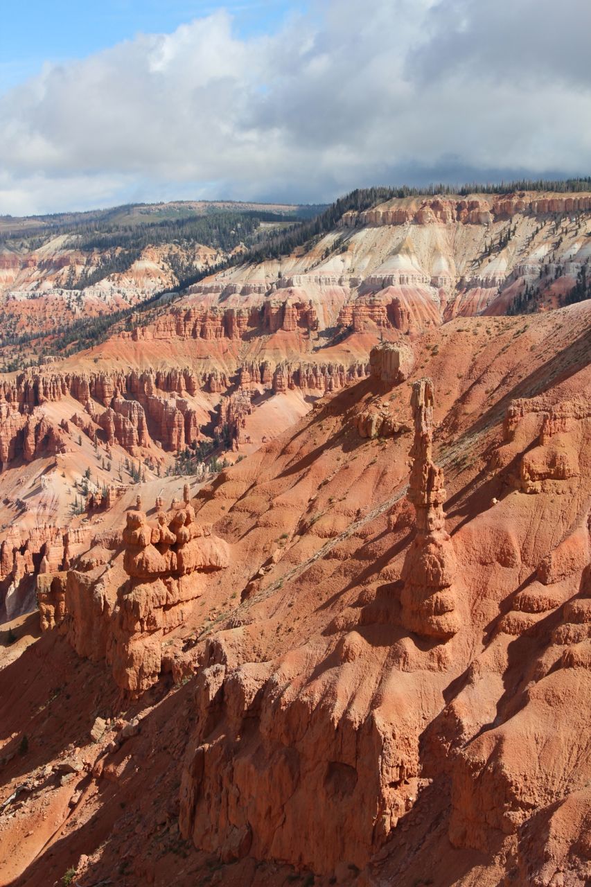 Situated in the middle of Dixie National Forest, Cedar Breaks National Monument is a testament to the forces of uplift and erosion. It shares the visual splendor of Bryce Canyon National Park not too far away, but it stands 2,000 ft higher in elevation at over a breathtaking 10,000 ft above sea level. Although both places were linked at one time, a gigantic fault separated them millions of years ago. Hiking at this altitude, even over mild elevation changes, is an exercise in breathing labor. Along certain sections, we were forced to stop, huffing and puffing, to catch our breath almost every 20 steps or so. If you haven’t acclimatized over a few days, you could suffer headaches and nausea.