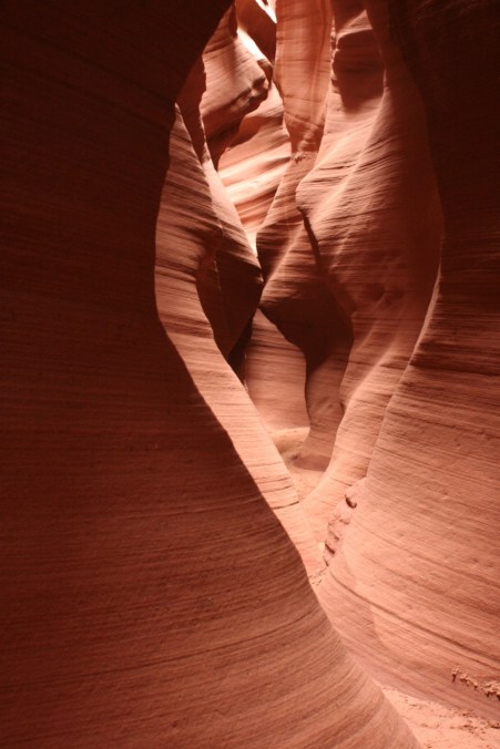Three years ago, we took the Antelope Canyon tour. As memorable as that tour was, hordes of tourists drawn by the fame of the canyon arrived from all over the world. To make matters worse, everyone was herded through the narrow passageways in numbers so thick that visions of being alone were delusions instead. Photographers were not allowed to bring tripods on the standard tours, but I discovered that by paying a bit more for a photographers’ tour, you got special dispensation.