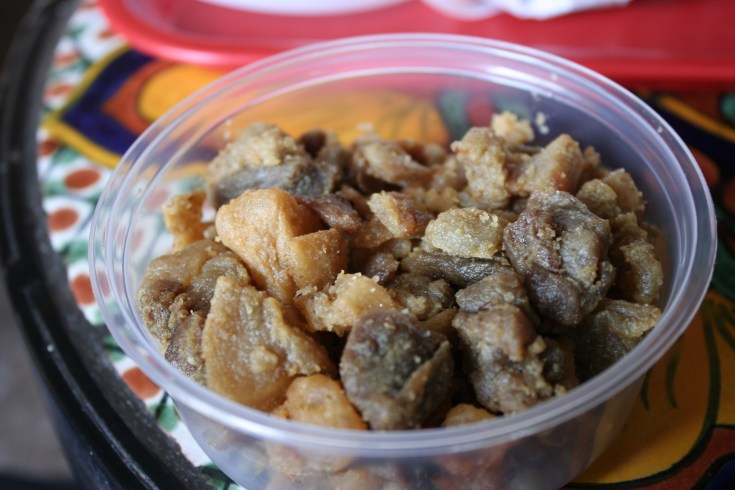 At checkout, for later eating, we purchased biscochitos (anise-flavored cookies) and a tub of real chicharrones, not the “chips” that are sold in cellophane packages in supermarkets.