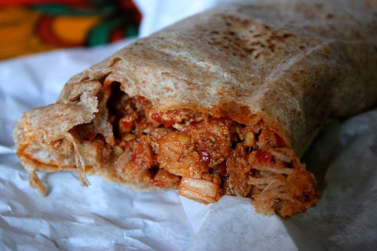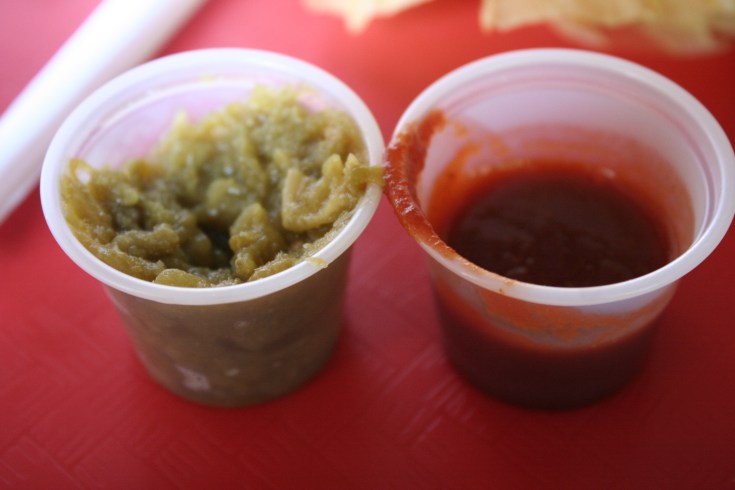 Leona’s was a little gem in Chimayo, across the walkway from the Santuario. Since 1977, Leona Medina-Tiede has been serving delicious snack foods, primarily burritos and tamales. I ordered the carne adovada burrito, very different from the adovada I had at El Bruno’s. This was a wonderful adovada, more tender than Bruno’s, more garlicky, shredded and salty, and lightly combined with red chile sauce. Her red chile sauce, also served on the side, was pure, unadorned chile powder and water, with a hint of natural sweetness. We purchased a jar of the green chile sauce, it was so good.