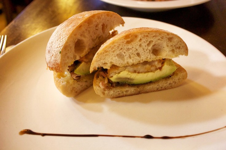 A special on the blackboard was The Buttie, grilled bacon served on toasted ciabatta bun with hashbrowns, caramelized onions and avocado. The very tasty filling was enough to overcome somewhat dry ciabatta.