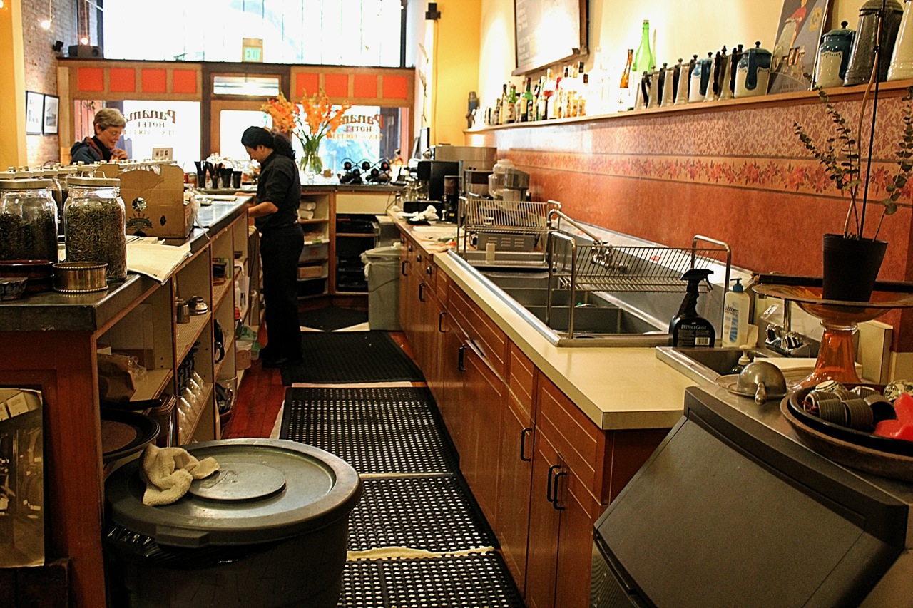 Not many realize that the Panama Hotel in the International District has a tea and coffee shop. Though it was set up to serve its clientele, it is open to the public. The space is not very large but is nicely decorated with old historic black-and-white photos on the walls and memorabilia of the Japanese community that used to live in the area before WWII. A good selection of pastries is available for breakfast as well as paninis and salads, teas from around the world and first-rate espresso and coffee. We spent a good 45 minutes enjoying our beverages and rolls, looking at the pictures and strolling through the hotel guest lounge area, accessible through a stairway at the rear as well as from the street.