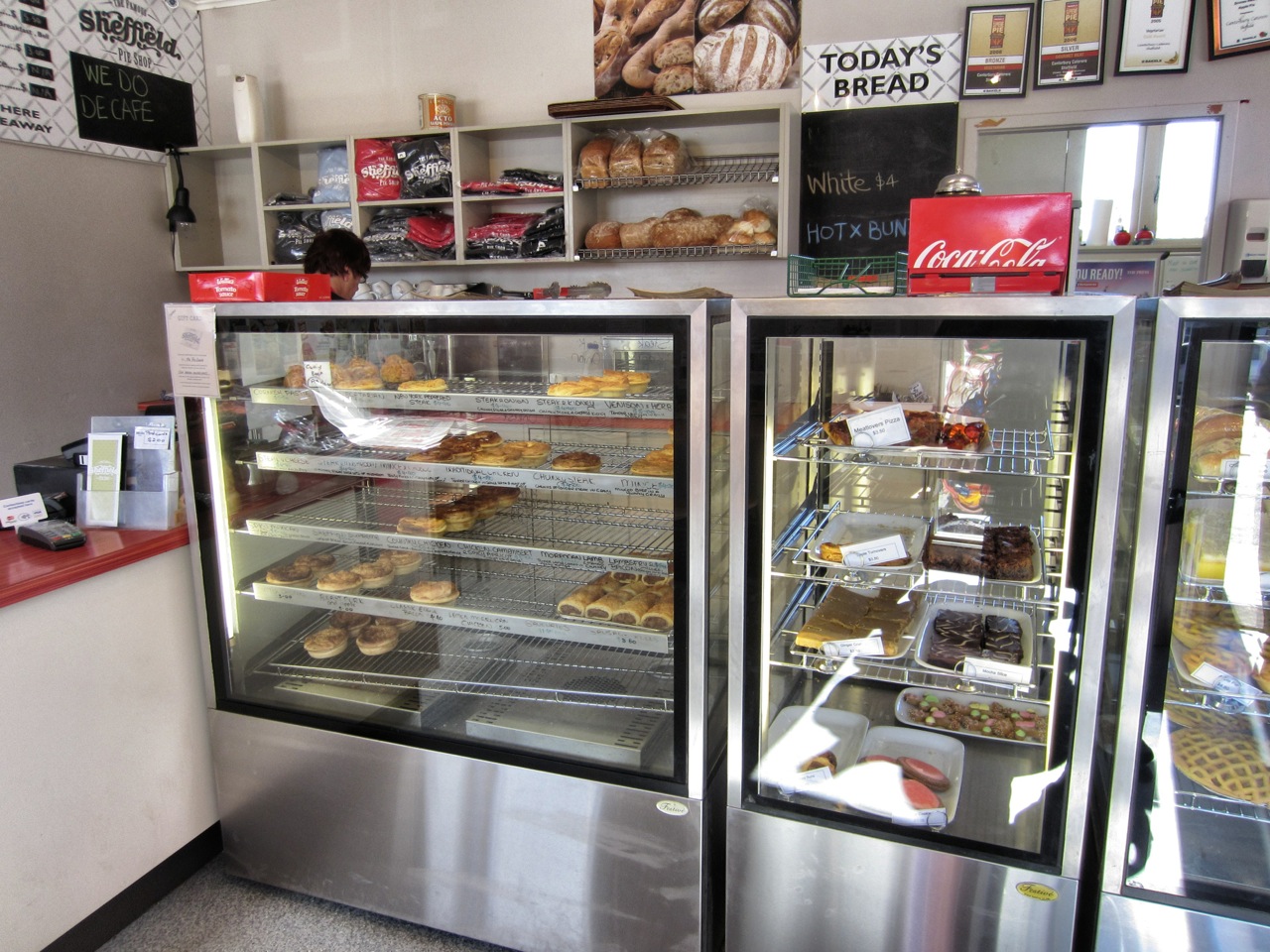 The shop is small, with very limited seating inside, a couple of small picnic tables outside. All the savory pies available for the day are displayed behind a glass case., several already sold out at almost noon, including steak and mushroom that I intended to get. I settled for mince (beef) pie. My wife preferred a sandwich instead.