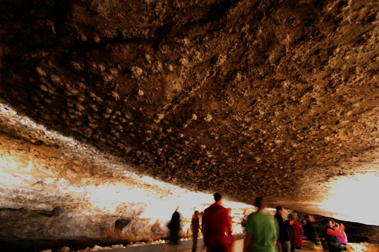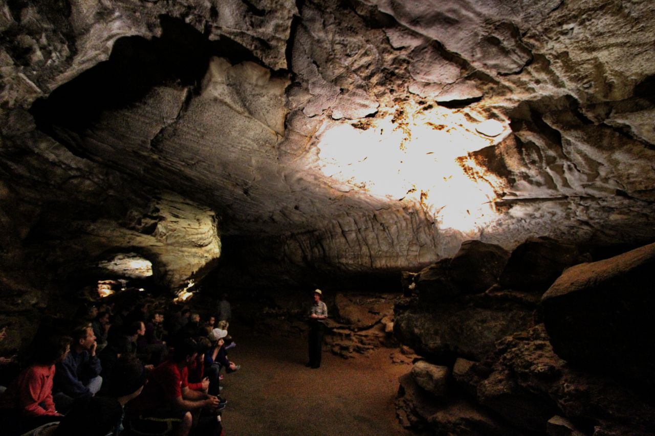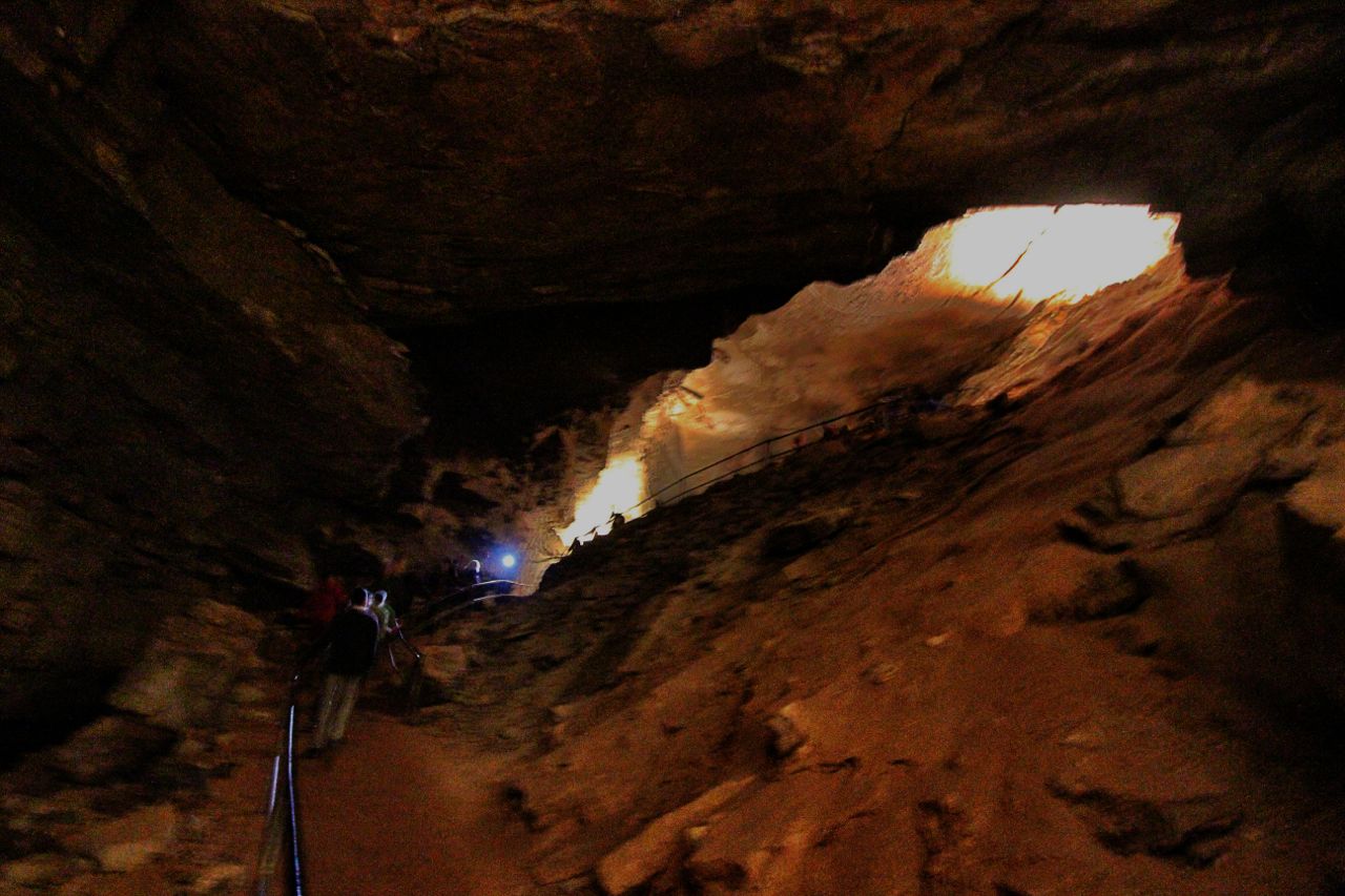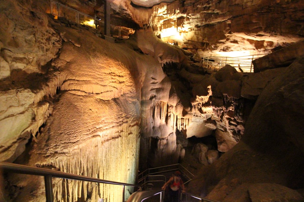 Mammoth was our first overnight stop after picking up a car at Nashville Airport and driving two hours north. The park is surrounded by the famous rolling hills of Kentucky. As we got closer, the road cuts in some areas bared telltale limestone layers. The soil has a rusty-reddish color.