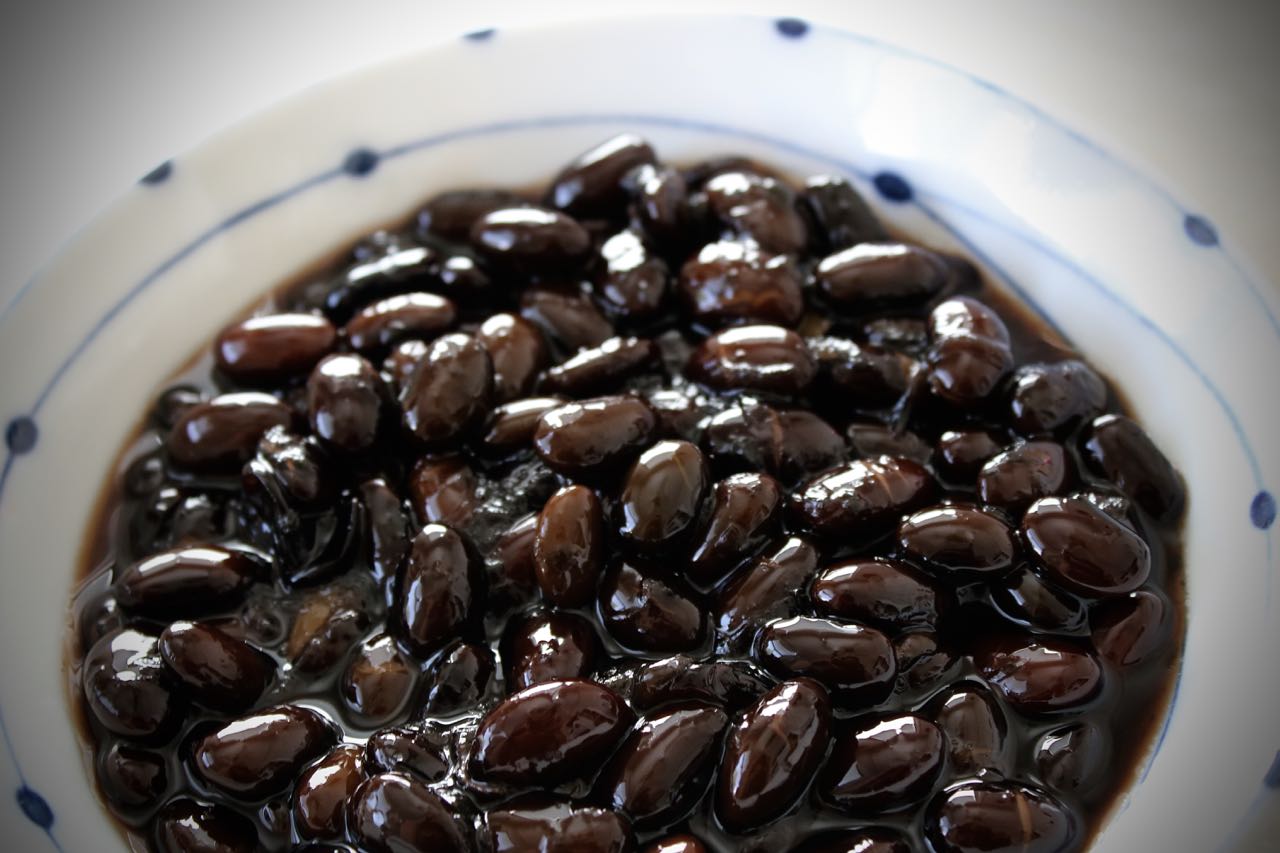 One of the traditional dishes he always made was kuromame. I decided to do them in his stead. I never asked about or watched him make this dish. I did observe that he never fussed with the beans (meaning they had to be pretty much left alone) and cooked them very gently, at almost a bare simmer. Other than that, I was on my own. I did what anyone else would do these days—searched the internet for recipes.