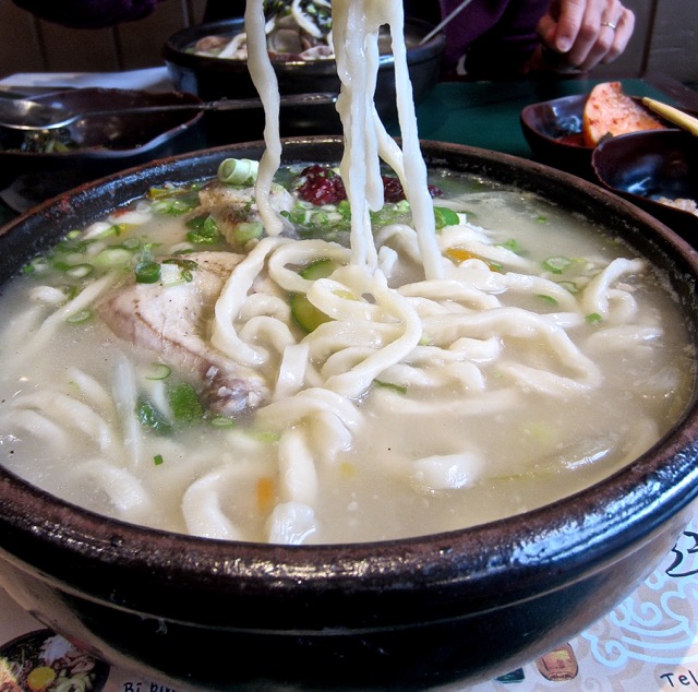 More impressive was chicken kal guk su (☆☆☆☆, top image). The small half chicken shredded easily with chopsticks, obviously simmered long to make the wonderfully rich broth enhanced by aromatics and other flavorings.