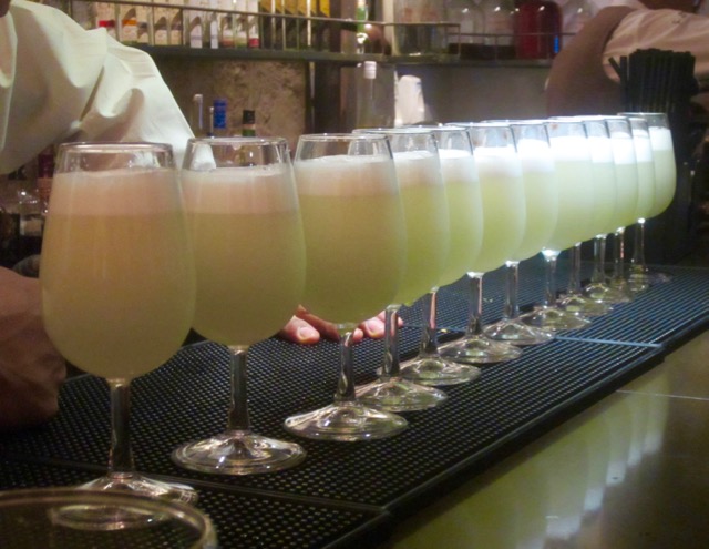 But, it wasn’t until I got to Lima that I, as well as others who took the Lima Gourmet Company food tour (and one that I highly recommend), was shown how to make the perfect pisco sour at the Embarcadero 41 Fusion Restaurant, where I also learned how to make ceviché. Making the ‘perfect’ anything is obviously a matter of taste and so I took instruction with that in mind. The twist that the bartender demonstrated was to only pour a portion of the sour into a glass, then to swirl the shaker to bloom the foam before pouring the rest. She also suggested using a non-aromatic pisco, such as Quebranta.