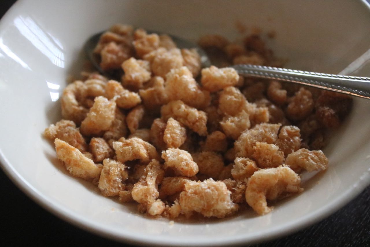 I thought my brother-in-law said bok choy. He repeated: batchoy, a Filipino noodle soup dish that had its origin in Iloilo where he happens to be from. While it’s traditional to use pork organs, a pork neck bone was used instead. Combine that with spare ribs and beef bones with marrow, shrimp paste and brown sugar and simmer for a long time and the result was thick with gelatin and flavor, a tad funky from marrow essence. Any meat and fat were scraped from the bones and shredded.