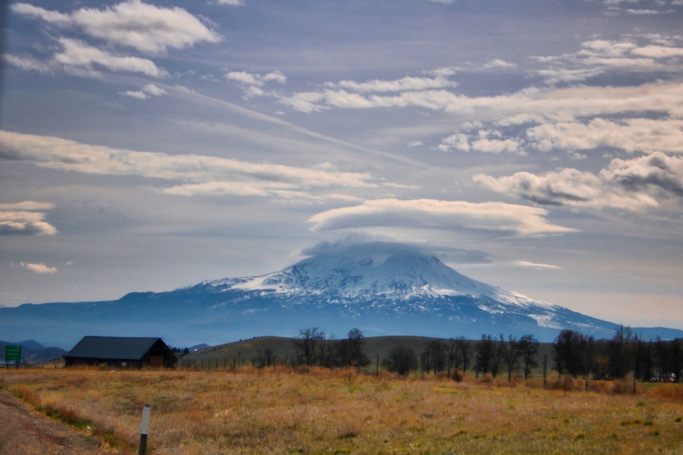 My breath is taken away every time I see Mount Shasta from Interstate 5, just south of the Oregon-California border. Even when skies aren’t always clear, its majesty dominates the horizon. Today, spectacular lenticular clouds were hovering over the mountain.
