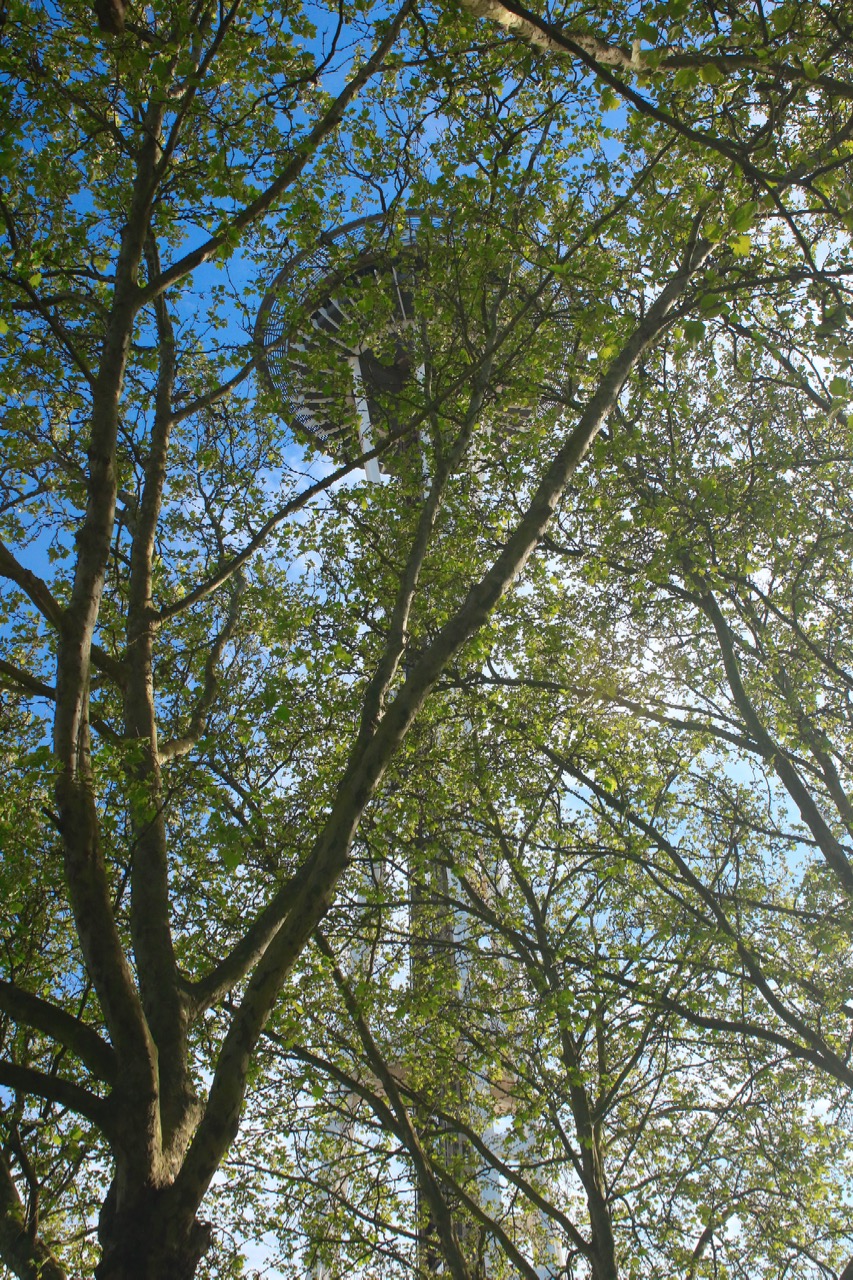 Monday was a fine sunny day to visit Seattle Center. The Space Needle is so tall (605ft/184m) that it can be seen from anywhere on the 40-acre campus, even through leafy trees.