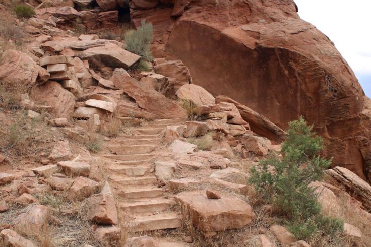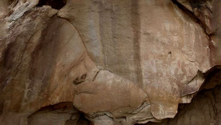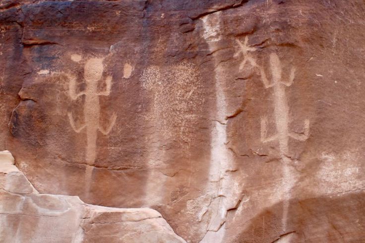 Rock carvings for public viewing are found in five areas of the park. Many more sites are not publicized to protect them from vandalism. It’s a sad state of affairs that this is necessary. The pre-Columbian Fremont peoples, who for a thousand years inhabited parts of what are now Utah, Nevada, Idaho and Colorado, used vertical rock faces, particularly those stained by desert varnish, as their palette on which they chiseled representational figures of humans and animals, and abstract designs. Their culture disappeared around 1200 CE suddenly and mysteriously.