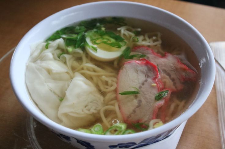 The menu also has saimin, that favorite of Hawaiian noodle soups. It also has wonton min that adds housemade wonton dumplings with the noodles, and includes a hard-cooked egg and barbecued pork. The noodles are cooked to the soft stage as Hawaiians like it.