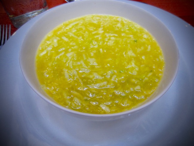 It consisted of orange juice and shredded cucumbers. This unlikely pairing, a combination I’d ordinarily skip over in a cookbook, was a sublime cold soup, the first course of a superb three-course dinner at Riad Boussa in Marrakech.