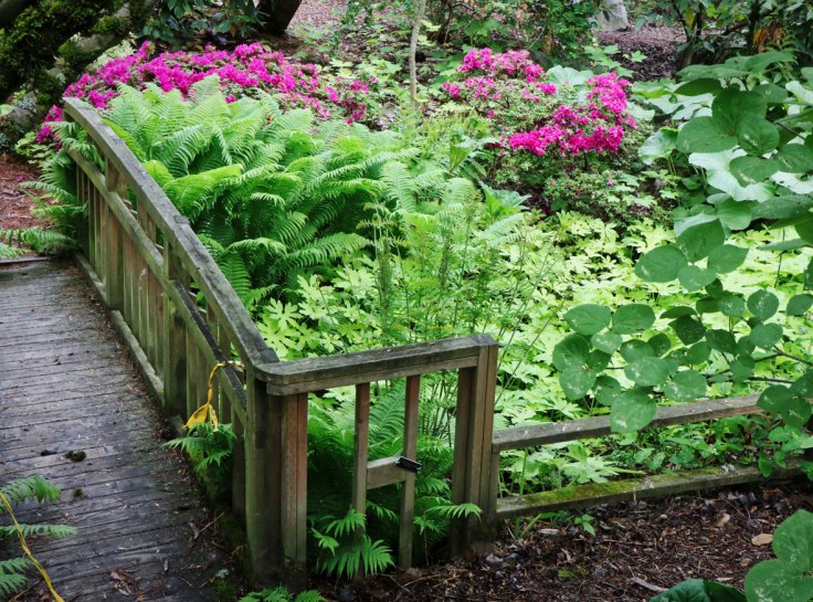Seattle has a little treasure, not nearly as well known (if at all) as University of Washington’s Arboretum, Kubota Garden or the Bellevue Botanical Garden. At the northern end of South Seattle College is its own arboretum, entirely designed, built and maintained by students. Within its six acres, surprises are at every turn. I saw signs of spring all around: azaleas and rhododendrons, flowering ground cover, bulb plants, new growth on evergreens, fully leafed Japanese maples. Admission is free. Spring is here at last!
