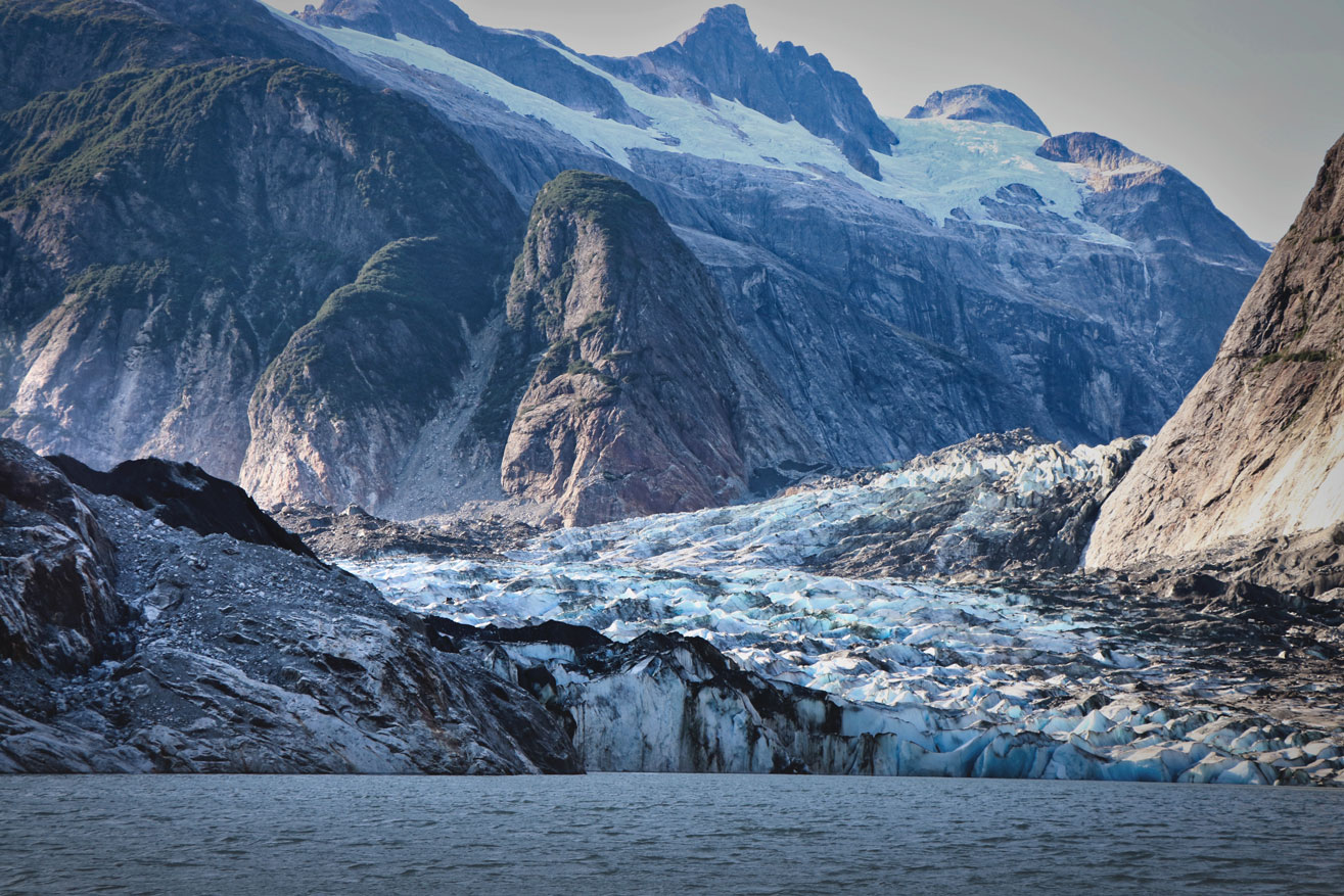 At the end of a jet boat ride on the Stikine River is Shakes Glacier. It has the unfortunate reputation for being one of the fastest receding glaciers in Alaska, at a current rate of 350ft/yr, according to the Shakes Glacier Survey Team. Because of this, icebergs regularly calve from the terminus, some of which I got to see.