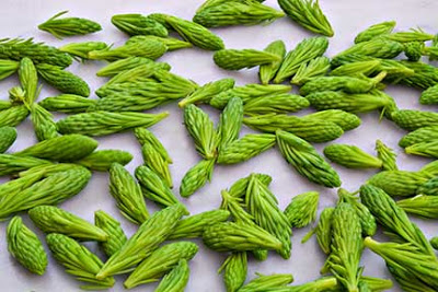 He added that this unusual ingredient is foraged by area locals and sold to nearby Baranof Island Brewing in early spring when the tender, lime green tips are ready to pick. As an historical side note, the guide also said the buds, because they’re high in vitamin C, cured early British and French explorers in North America of scurvy.