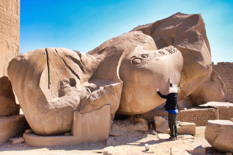 Rameses II is considered the greatest pharaoh who ever lived. He ruled Egypt at the height of its power for 66 years, the second longest in pharaonic history. However, he liked to have big statues made of himself. For instance, the Ramesseum, his mortuary temple, features a colossal syenite statue. Now broken apart at the waist, it otherwise would have been 56ft/17m high and weighed a stupendous 1,000 tons. Fragments, including a single piece consisting of his head and upper torso, are scattered nearby.