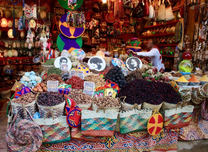 We passed open-air shops in the marketplace area selling all sorts of merchandise, including fabrics, clothing, food products, scents, jewelry, spices and crafts. The hawking was as vigorous as anywhere else in Egypt.