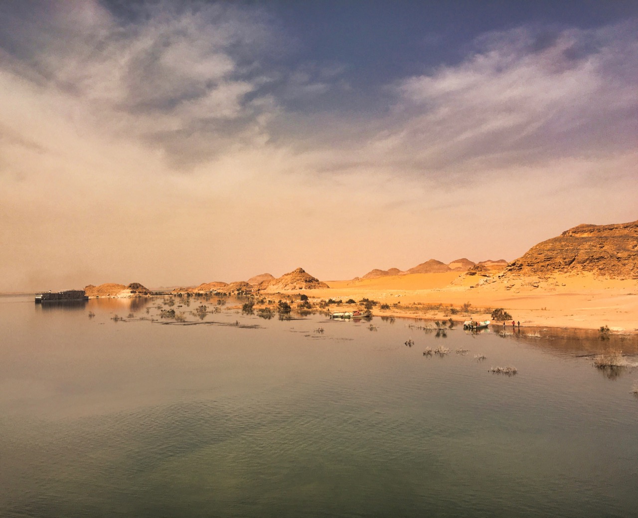 We arrived at ‘Nubian Village’ in the late afternoon by motorboat, after having spent the earlier part of the day visiting the Temple of Philae and stopping at a local market in Aswan. The boat ride from Aswan let us see several interesting things along the river.