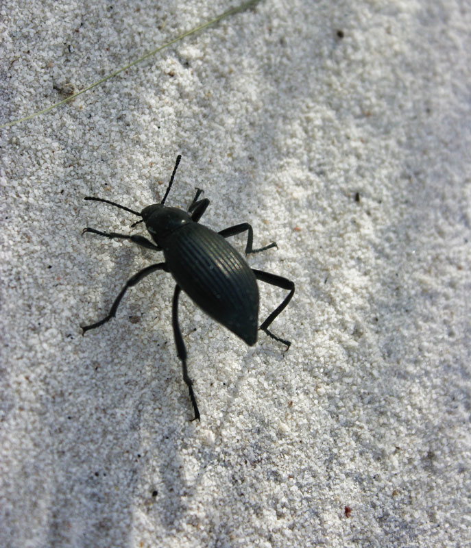 When we arrived, it was still and quiet, ironic because the area was host to the Trinity site where the first atomic bomb was detonated. Wave patterns on the dunes indicated that winds blew only recently (top image). I stuck my hand into the sand. It was strangely cool to the touch. There was no sighting of animal life except for a darkling beetle that seemed like a perfect target for predators. At the visitor’s center, we signed up for the last ranger-led tour of the day.
