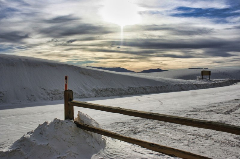 Going through this part of the Tularosa Basin was a disorienting experience, like being surrounded by snow fields, except the landscape was covered in white dunes composed of fine grains of gypsum.