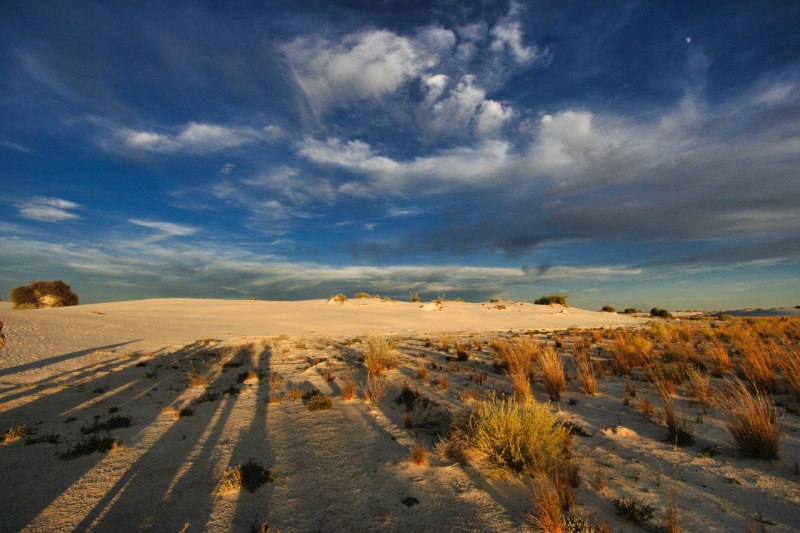 Exploring White Sands after sunset is more beautiful still. Like snow, the gypsum fields lighten the landscape well into twilight, a winter scene in summer.