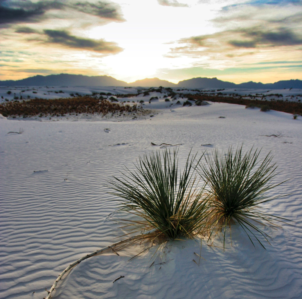 Exploring White Sands after sunset is more beautiful still. Like snow, the gypsum fields lighten the landscape well into twilight, a winter scene in summer.