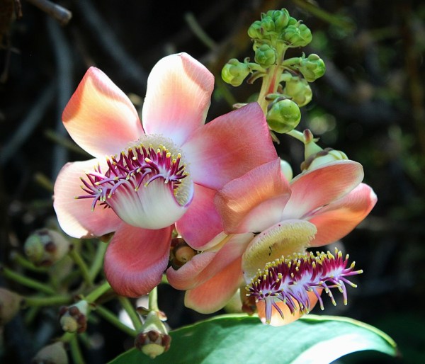 A more fascinating tree I've never come across. It's more commonly known as the cannonball tree because its russet-colored fruits are shaped like and almost as heavy as cannonballs and give off an explosive sound when they fall and hit the ground. The fruit pulp inside is bluish-gray and attracts wild animals which eat the seeds that get propagated through droppings.... Continue Reading →