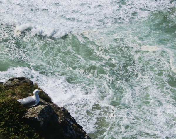 It amazes me that seabirds can find comfort in daunting places. Below an overlook somewhere south of Cape Perpetua on the Oregon coast, I saw this gull resting on a rocky ledge high above crashing waves, not bothered by a stiff wind ruffling its feathers nor a loud colony of sea lions barking from the beach below.