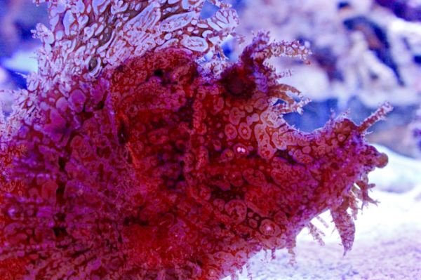 Is this a face that only a mother could love? Don't tell that directly to the weedy scorpionfish who has a bit of a venomous bite. Kidding aside, Rhinopias frondosa is spellbinding, even beautiful to look at. It doesn't swim so much as crawl on its lacy fins. I saw this specimen at the Georgia Aquarium.