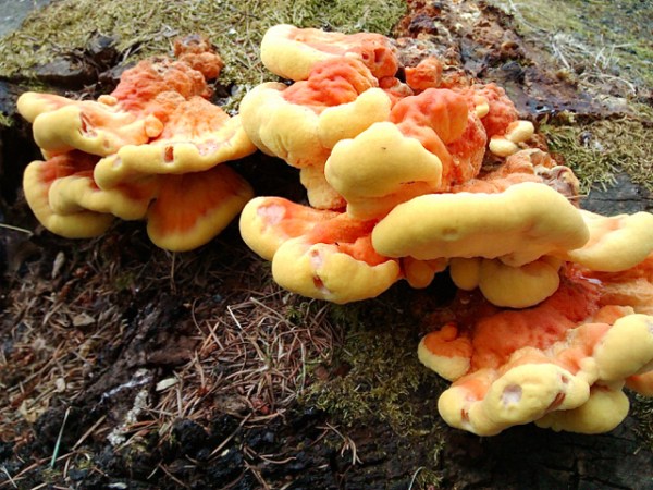 I've taken a trail near my house many times and have never come across this fungus, which was growing on a Douglas fir stump. Laetiporus conifericola has striking yellow and orange coloring, difficult to miss when approaching it. It's said to be edible and taste like chicken or crab, thus the common names chicken-of-the-woods and crab-of-the-woods, but I'm not in the... Continue Reading →